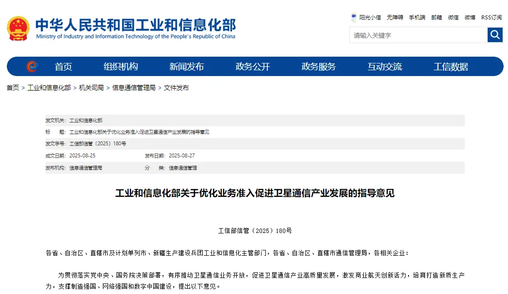 消息来源:工业和信息化部 工信部印发《关于优化业务准入促进卫星通信产业发展的指导意见》
