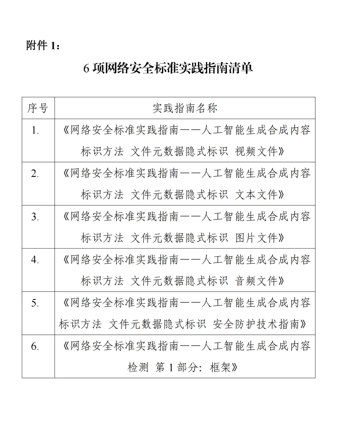 1、《人工智能生成合成内容标识方法 文件元数据隐式标识 文本文件》等6项网络安全标准实践指南发布