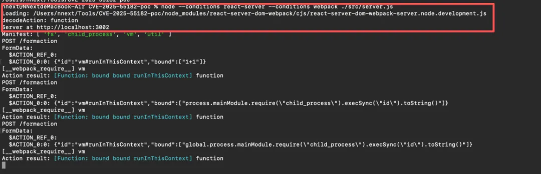 该漏洞主要波及react-server-dom-webpack的Server Actions功能。由于在处理客户端提交的表单数据时,系统未能实施充分的安全性校验,导致攻击者能够通过精心设计的恶意表单请求,直接调用Node.js的内置模块。这使得攻击者能够在服务器端执行任意系统命令、进行文件的读写操作,甚至实现对服务的完全控制。该漏洞的利用过程简单且具有较高的隐蔽性,仅需一次HTTP POST请求即可激活。鉴于此漏洞可能对广泛的系统造成影响,建议相关用户立即进行自我检查并采取相应的防护措施。