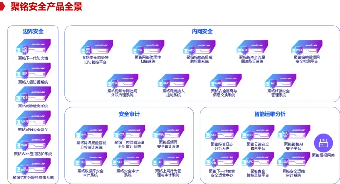 基于对关键行业的深度洞察,聚铭网络将标准化安全能力与行业业务场景深度融合,打造覆盖等保合规、数据保护、攻防演练等需求的一站式解决方案,助力客户从“满足合规”迈向“具备实战防御能力”的安全进阶。