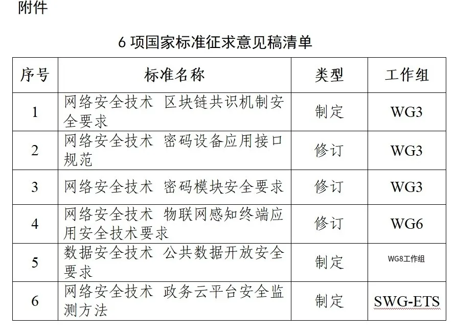 1、《数据安全技术 公共数据开放安全要求》等6项国家标准公开征求意见