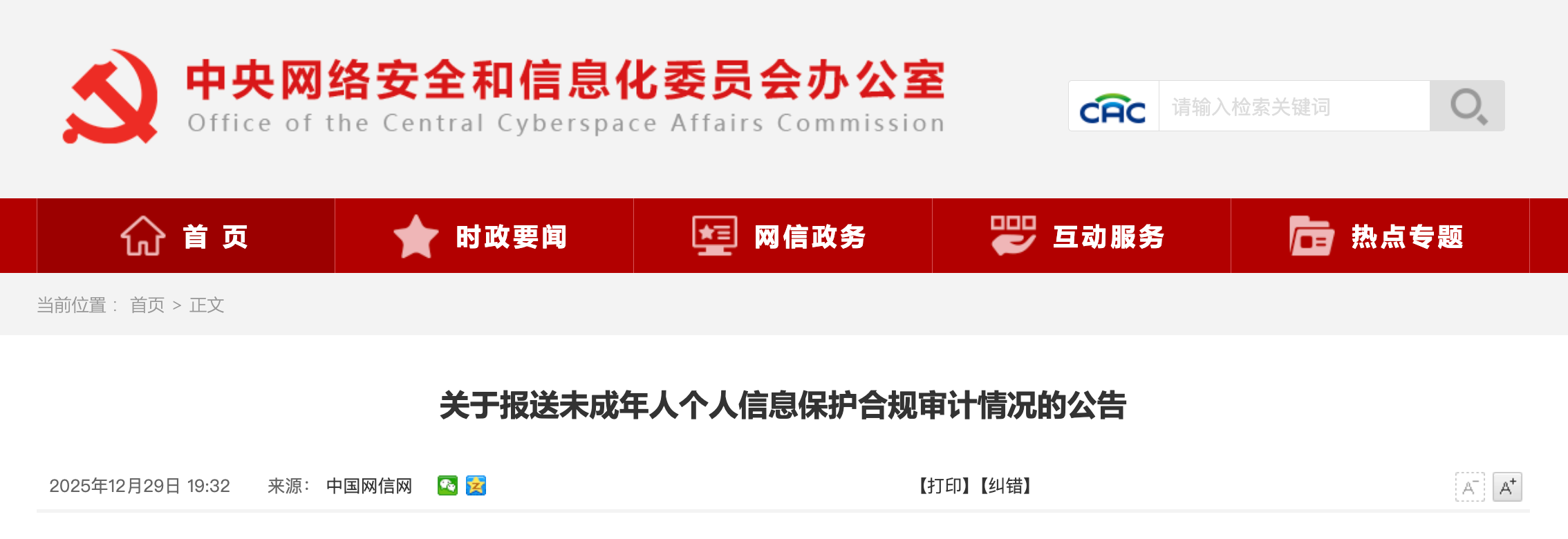 关于报送未成年人个人信息保护合规审计情况的公告 |