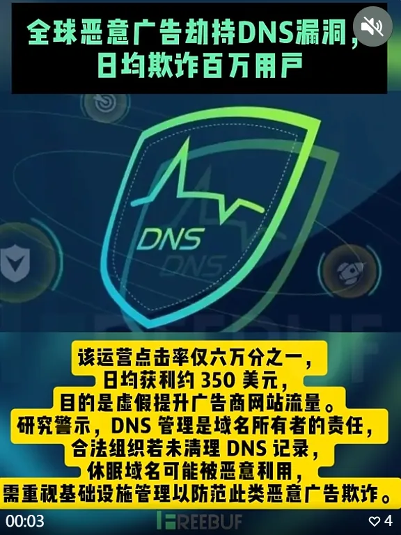 此次全球性恶意广告劫持事件再次敲响警钟:DNS 不仅是互联网的地址簿,更是安全的第一道闸门。正如研究人员所言,遗弃的DNS记录就像遗落在街边的玩具——看似无害,却极易被恶意拾取。