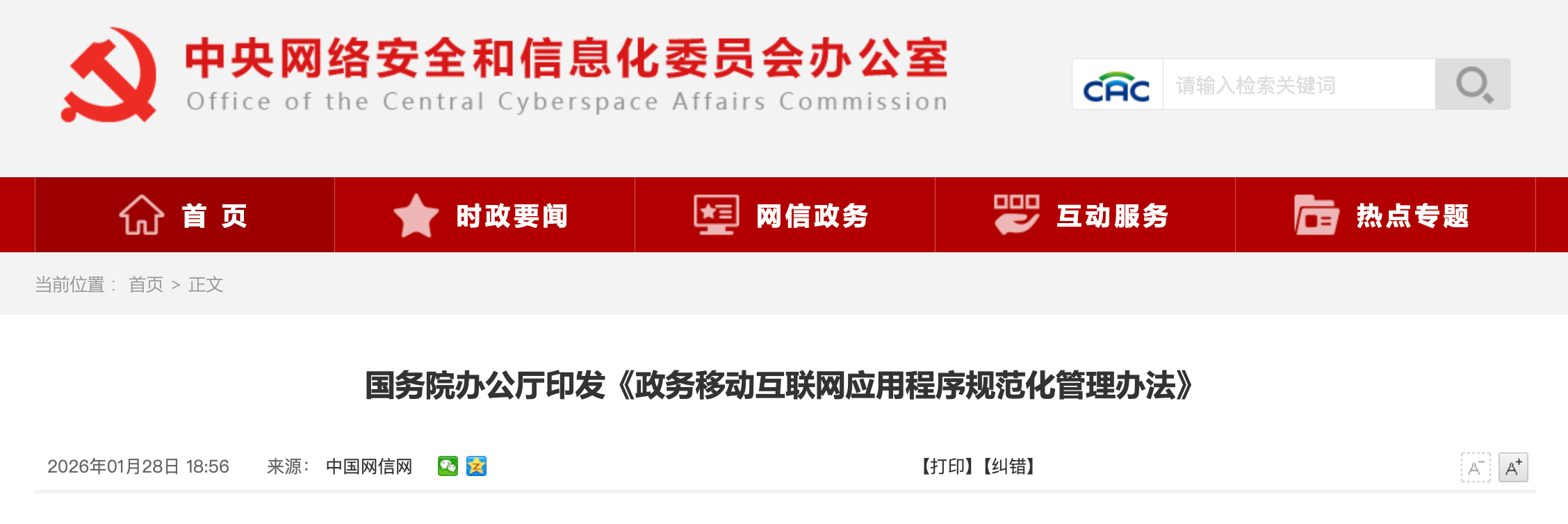 信息来源:中央网络安全和信息化委员办公室 https://www.cac.gov.cn/2026-01/28/c_1771330044596686.htm