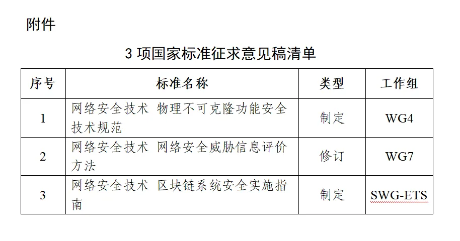 近日,全国网络安全标准化技术委员会归口的《网络安全技术 物理不可克隆功能安全技术规范》等3项国家标准现已形成标准征求意见稿。