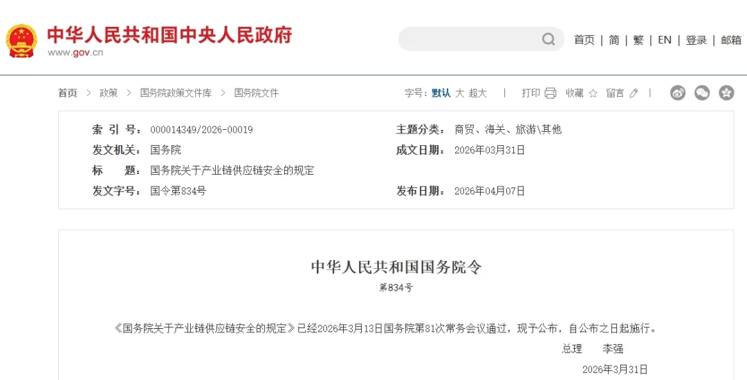 消息来源:中华人民共和国中央人民政府 https://www.gov.cn/zhengce/zhengceku/202604/content_7064838.htm